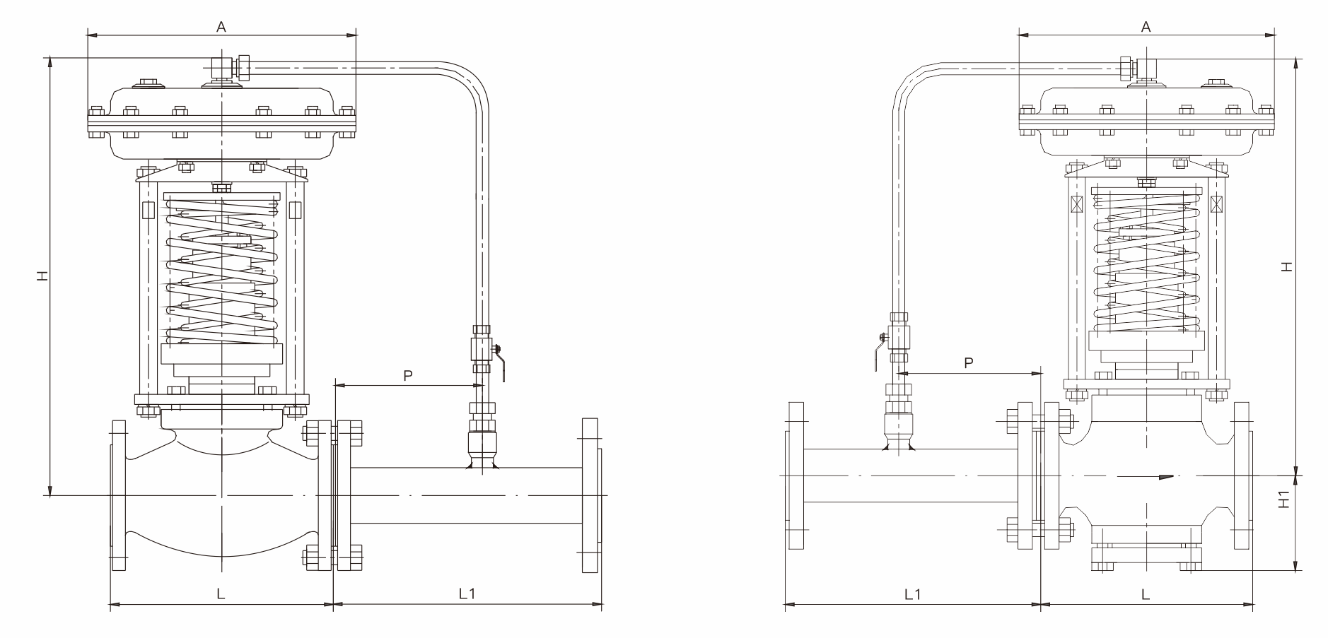 壓開型:用于閥前壓力調節,當閥后壓力升高,閥門打開,以達到泄壓,穩壓的目的。